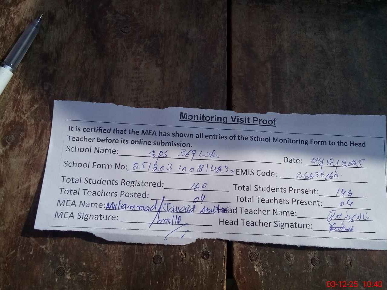 | EMIS Code: 36630160 | Name of School: GPS 369/WB | |||
