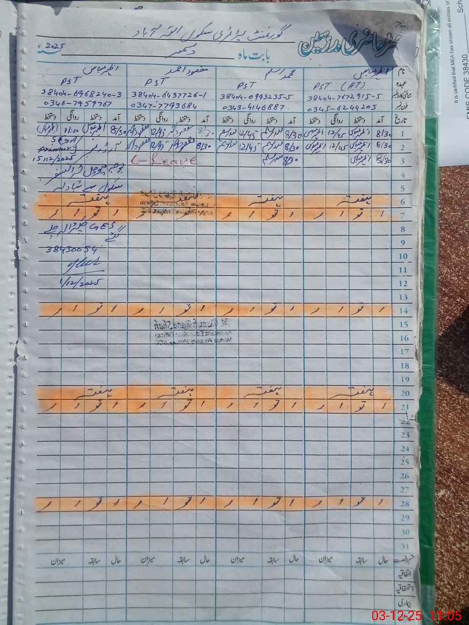 | Name: Az**** Ab**** Designation: (School Headmaster's/Headmistress's) PST Phone/Cell Number: 03**** |