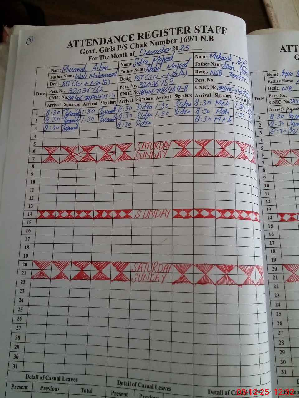 | CNIC | Full Name | Designation | R/C | Absence During Last Calender Month |