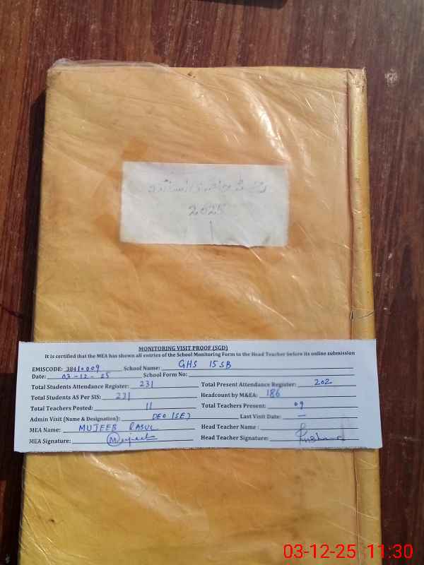 | EMIS Code: 38410009 | Name of School: GHS CHAK NO.15 SB | |||
