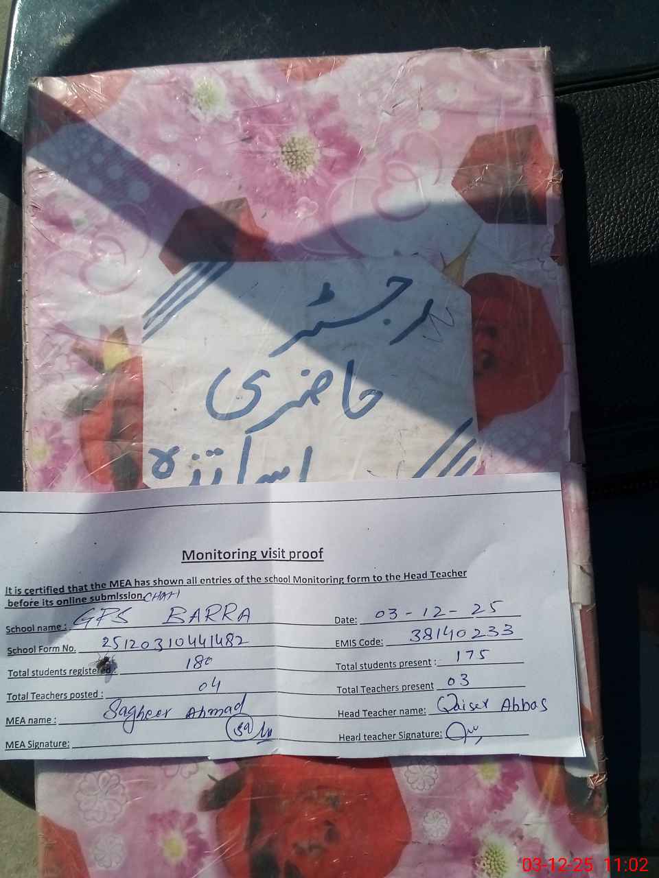 | EMIS Code: 38140233 | Name of School: GPS CHAH BARRA | |||
