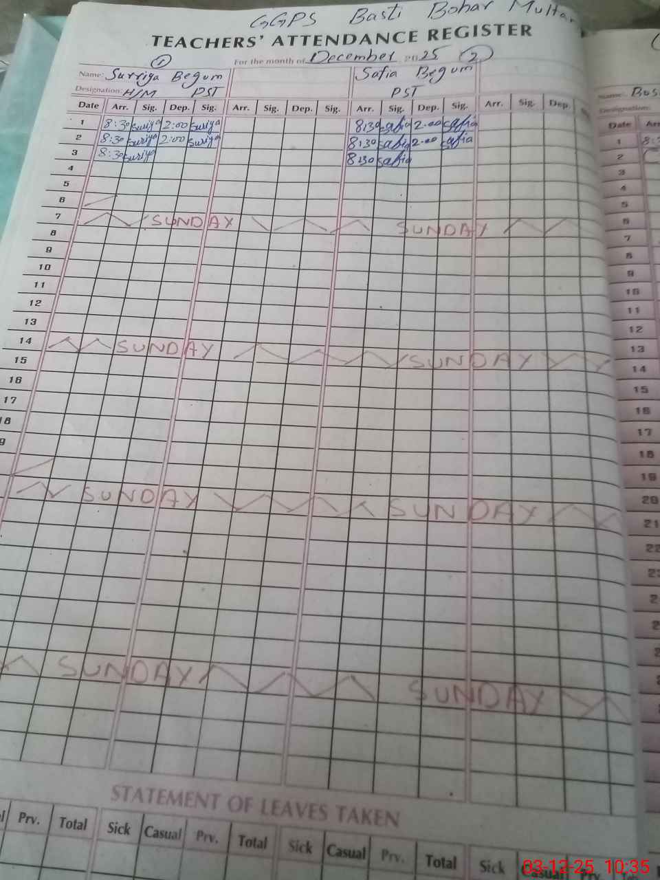 | 36**** | Bu**** Fa**** | PST Science/Maths | Regular | 0 | 0 | 0 | 0 | 0 | 0 | 0 | 0 | 0 | Casual |