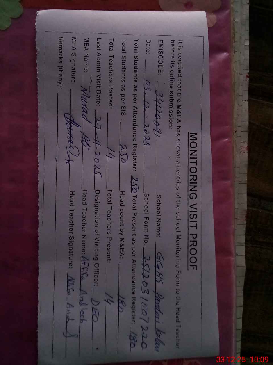 | EMIS Code: 34120091 | Name of School: GGHS PANDORI KALAN | |||
