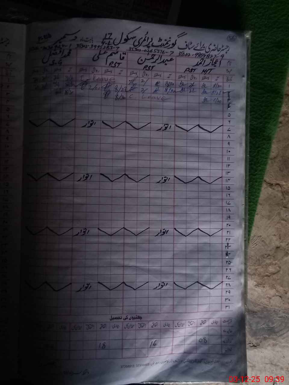 | CNIC | Full Name | Designation | R/C | Absence During Last Calender Month |