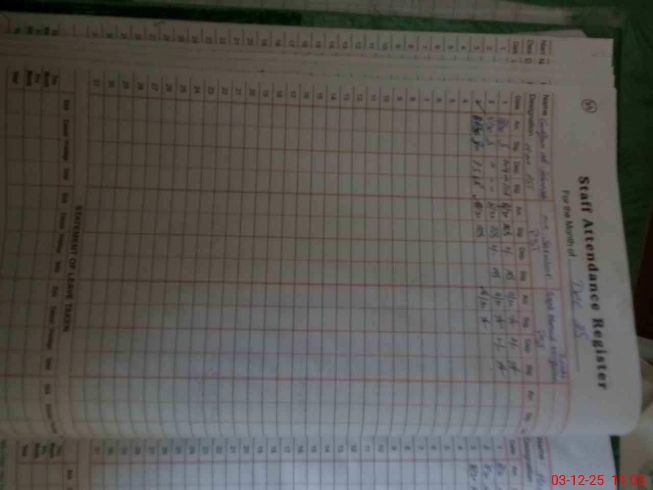 | CNIC | Full Name | Designation | R/C | Absence During Last Calender Month |