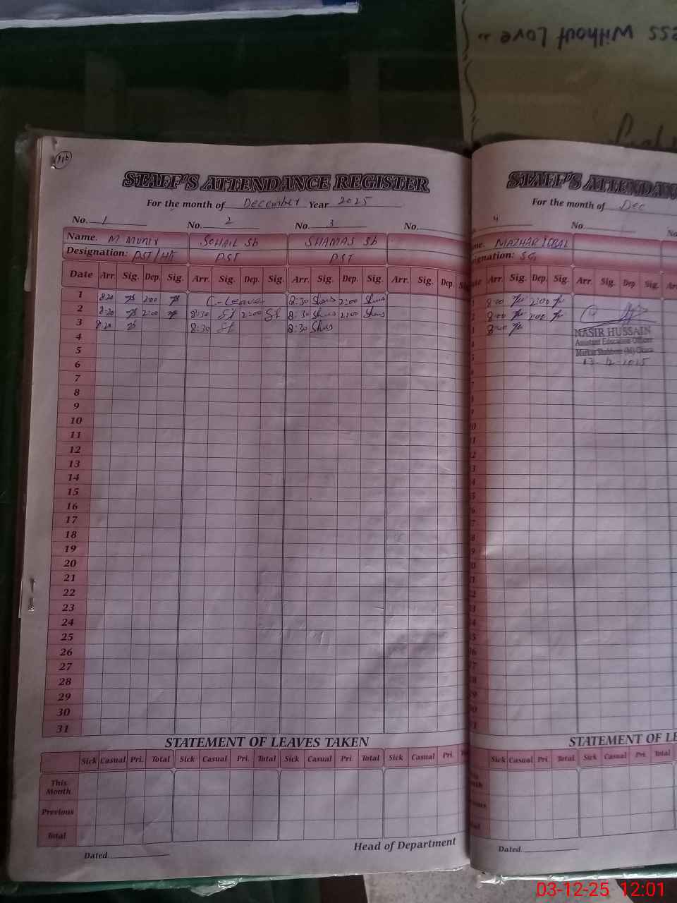 | Remarks (Use Separate Page if Required): last administrator visit was carried out by AEO on 3/12/2025 | |||||