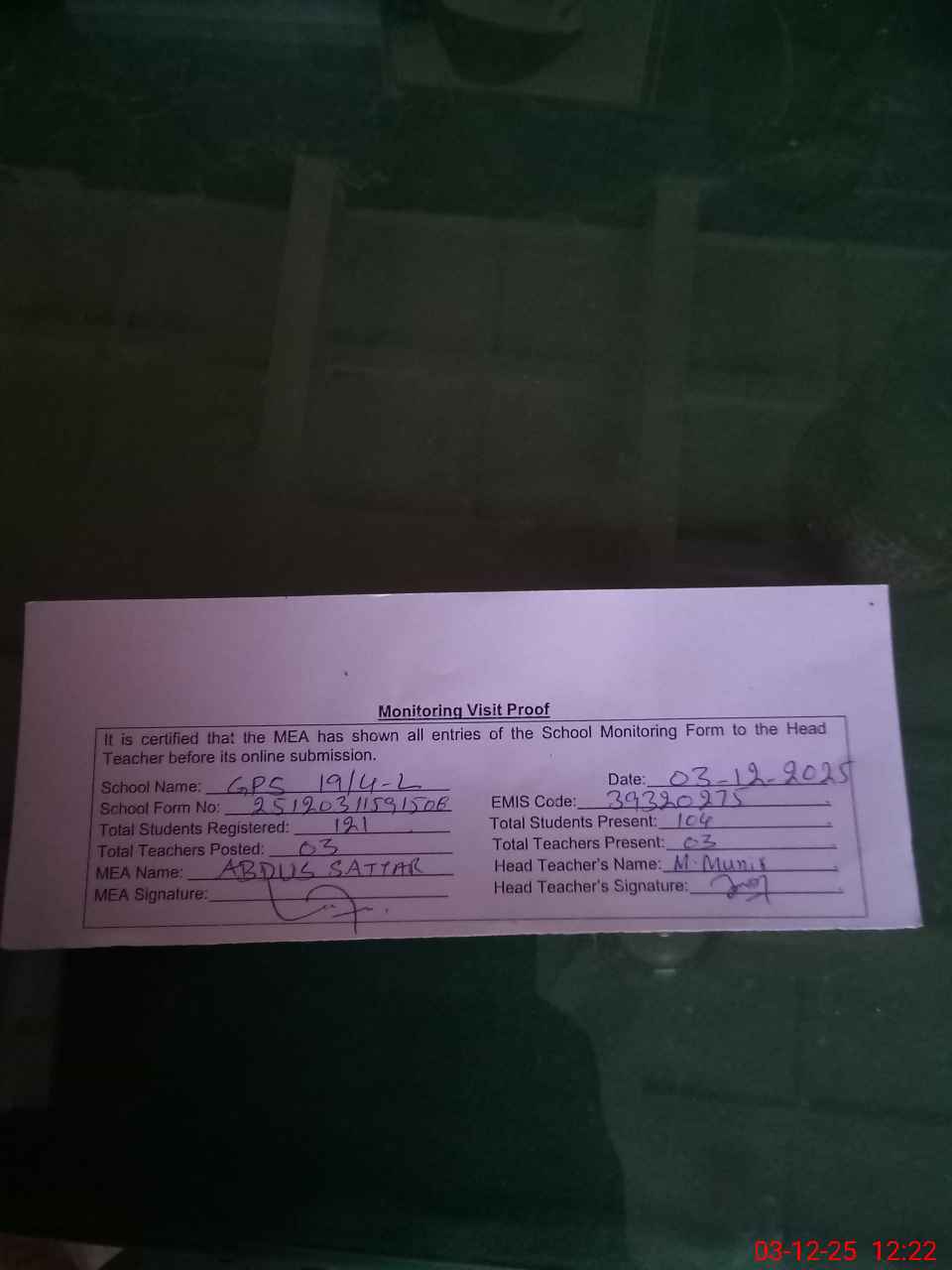 | EMIS Code: 39320275 | Name of School: GPS CHAK 19/4L | |||