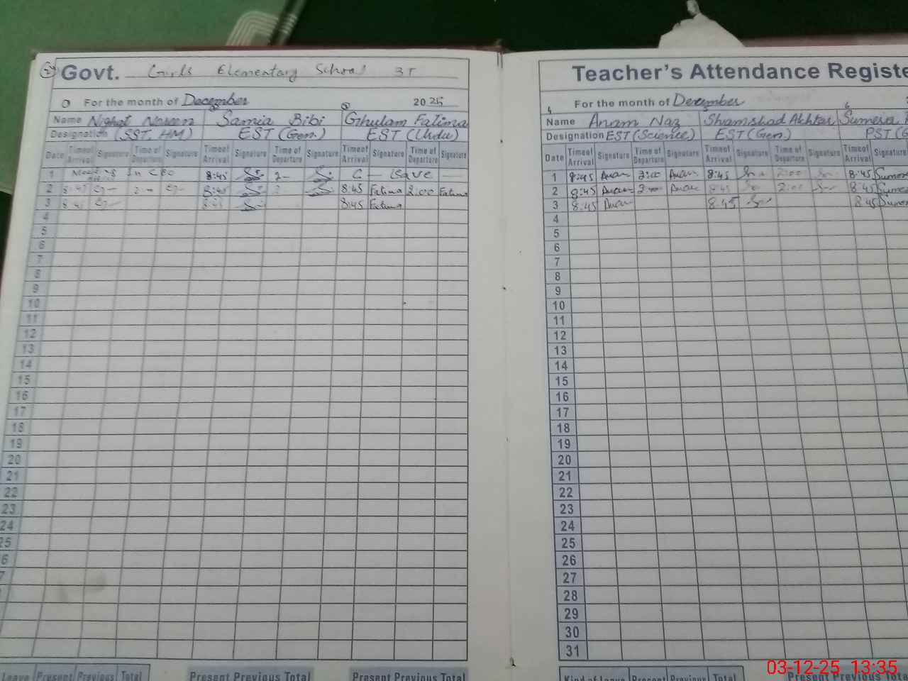 | CNIC | Full Name | Designation | R/C | Absence During Last Calender Month |