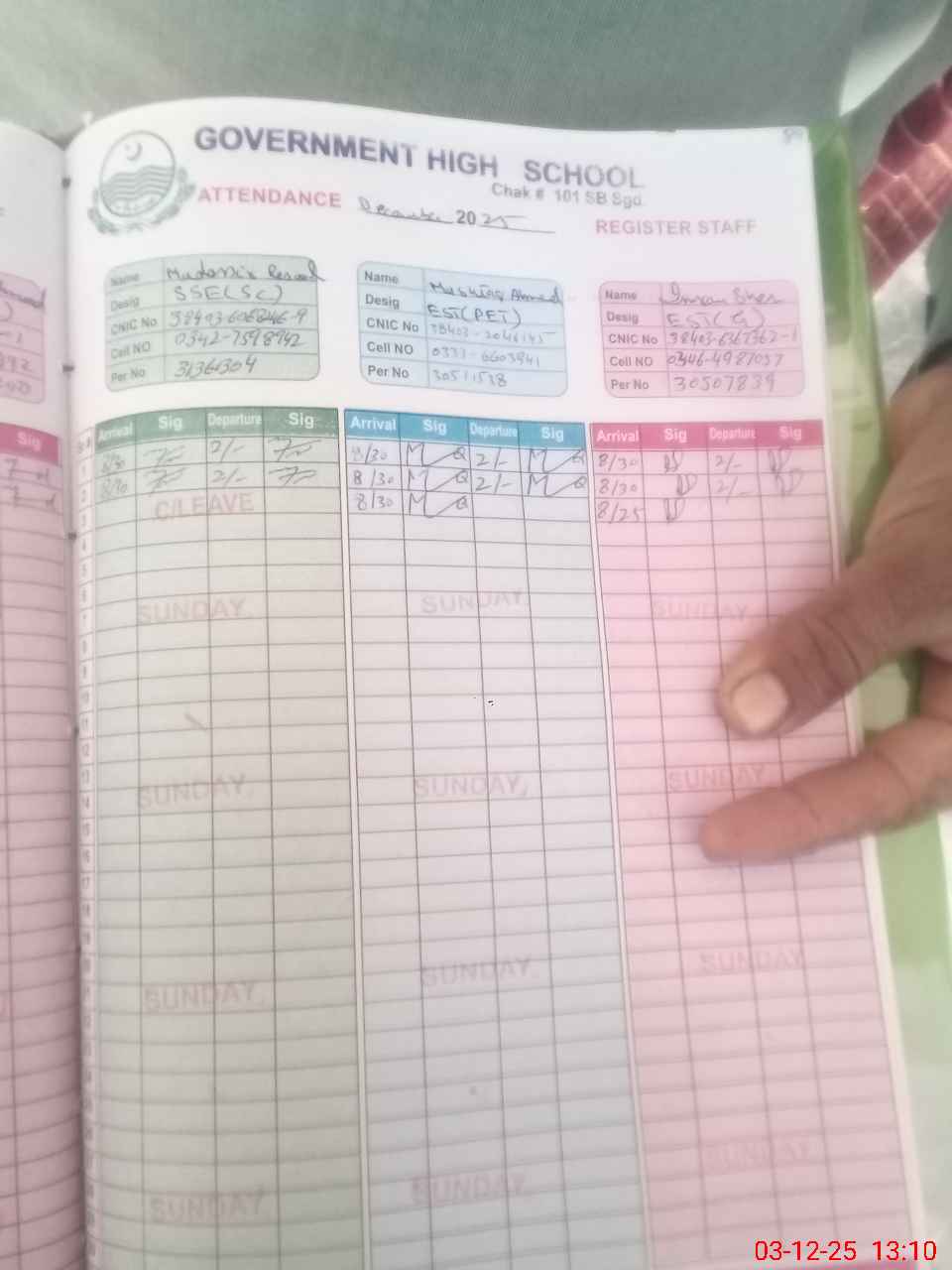 | Name: FA**** ULHA**** Designation: (School Headmaster's/Headmistress's) SST (CS) Phone/Cell Number: 03**** |