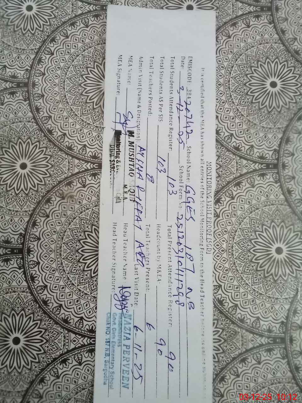 | District: SARGODHA | Tehsil: SARGODHA | Markaz: JHAL CHAKIAN - FEMALE | Level: Middle | |