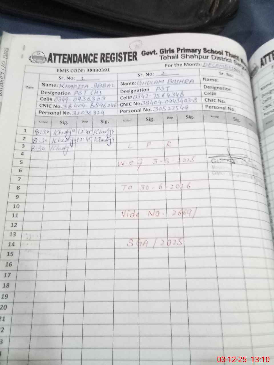 | Name: KH**** IQ**** Designation: (School Headmaster's/Headmistress's) PST Phone/Cell Number: 03**** |