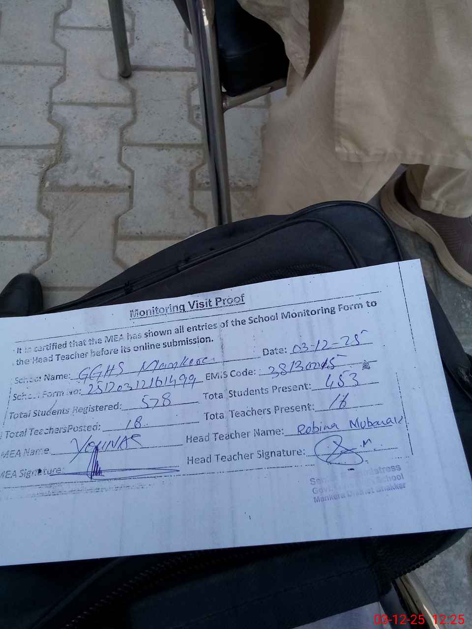 | EMIS Code: 38130015 | Name of School: GGHS MANKERA | |||