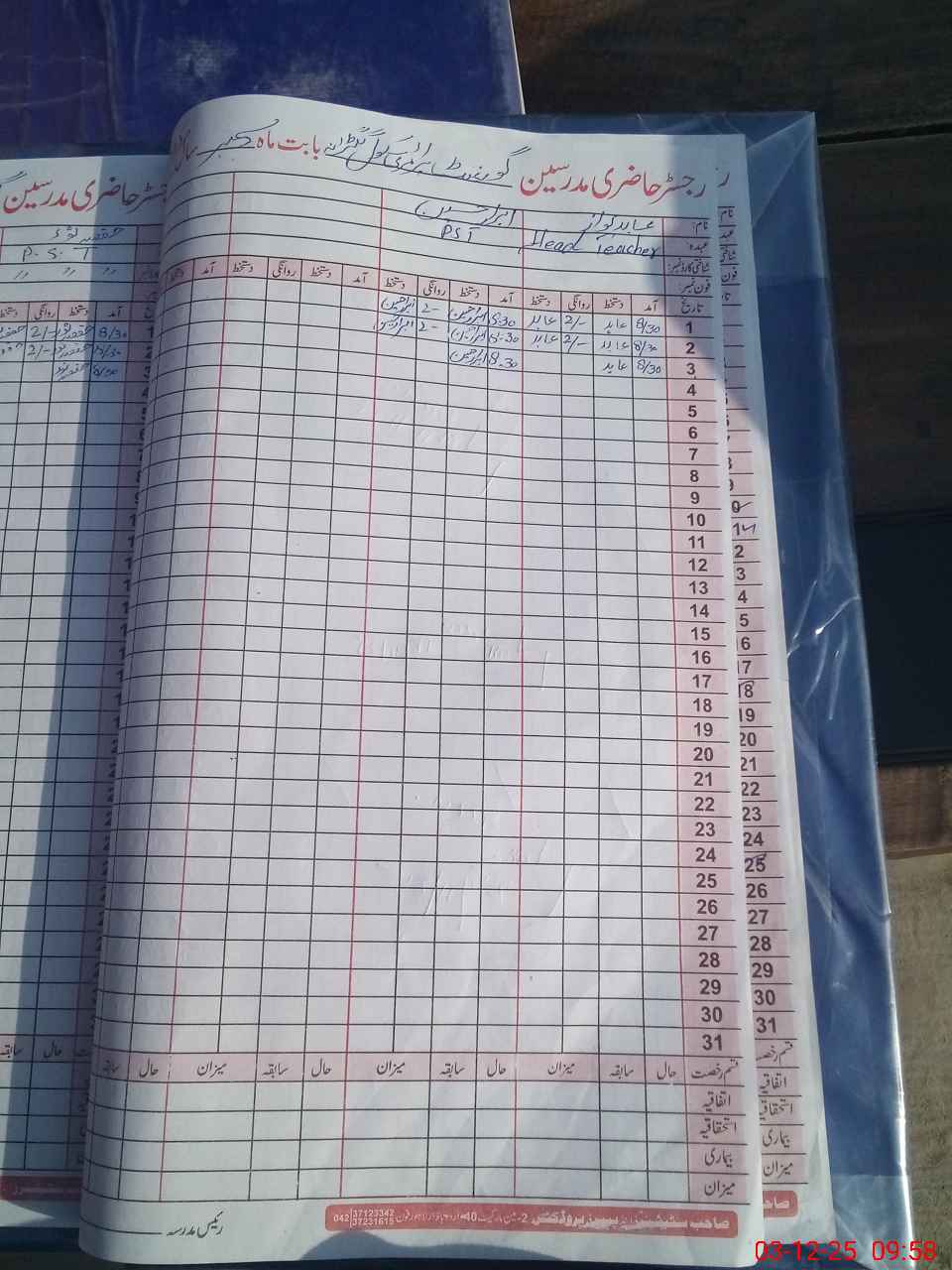 | Name: AB**** NA**** Designation: (School Headmaster's/Headmistress's) PST Phone/Cell Number: 03**** |