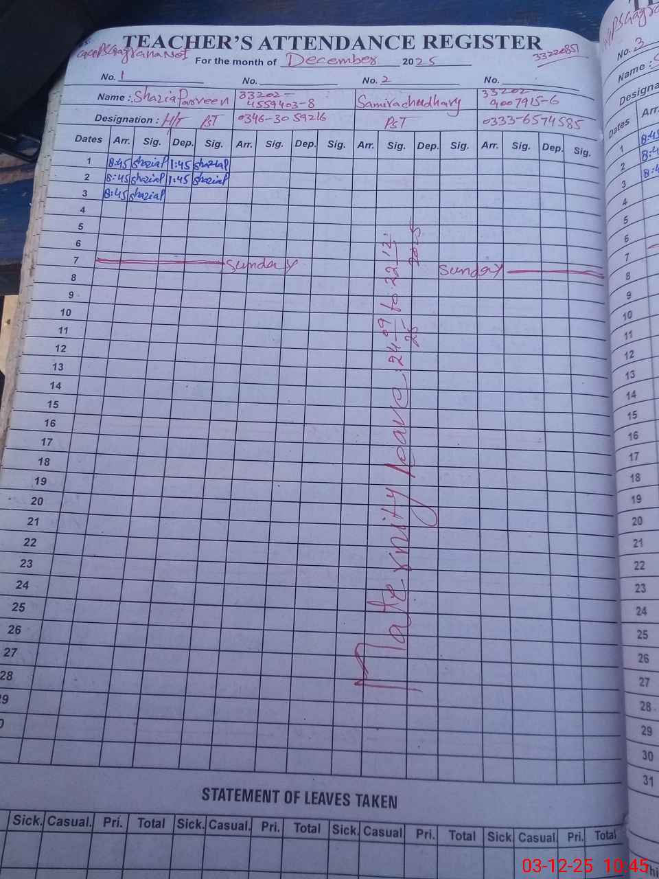 | 33**** | Sa**** Ch**** | Regular | 30 | 0 | 0 | 0 | 30 | 0 | 0 | 0 | 0 | Maternity | |