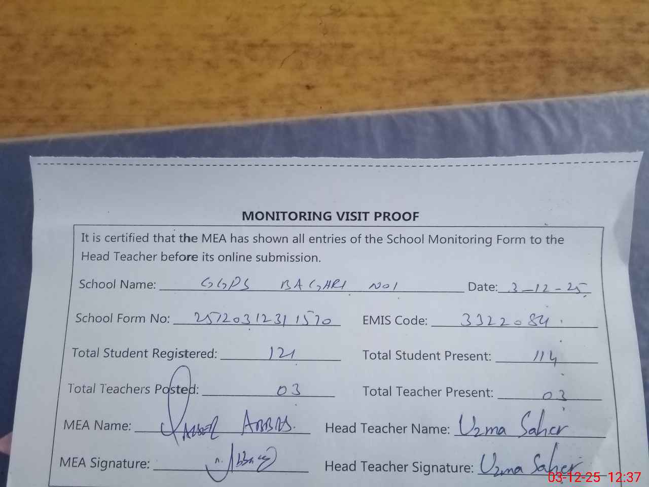 | EMIS Code: 33220841 | Name of School: GGPS BAGHRI NO 1 | |||