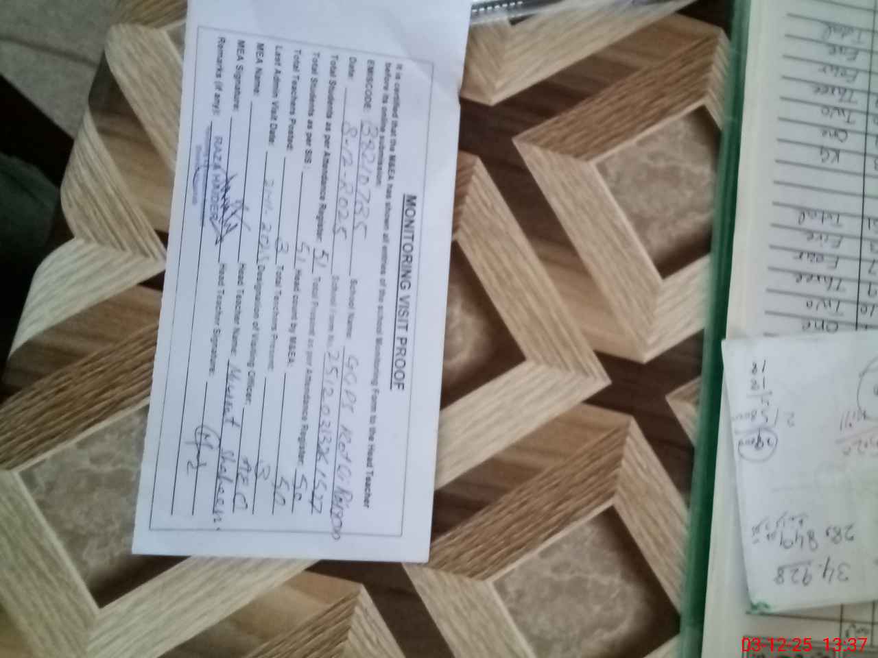 | Attendance Register | Head Teacher | MEA with School | Visit Proof |