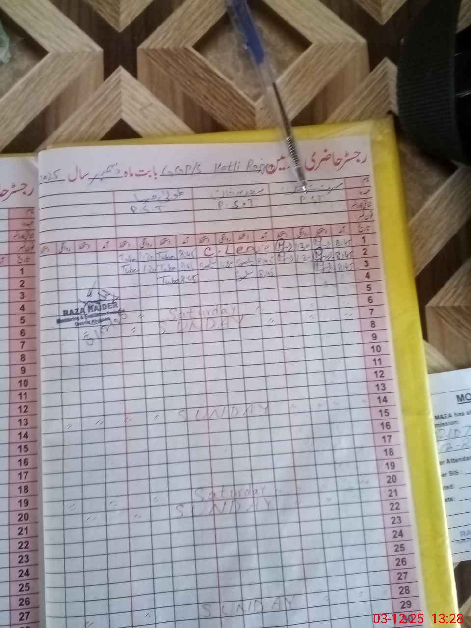 | Name: Mu**** Sh**** Designation: (School Headmaster's/Headmistress's) PST Phone/Cell Number: 03**** |