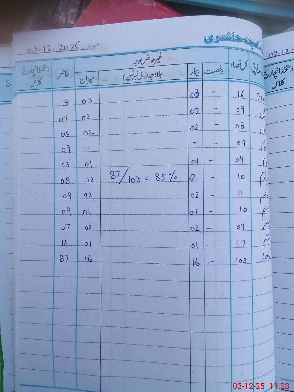 | Remarks (Use Separate Page if Required): today attendance on register shown as 87 whereas only 60 students were present | |||||