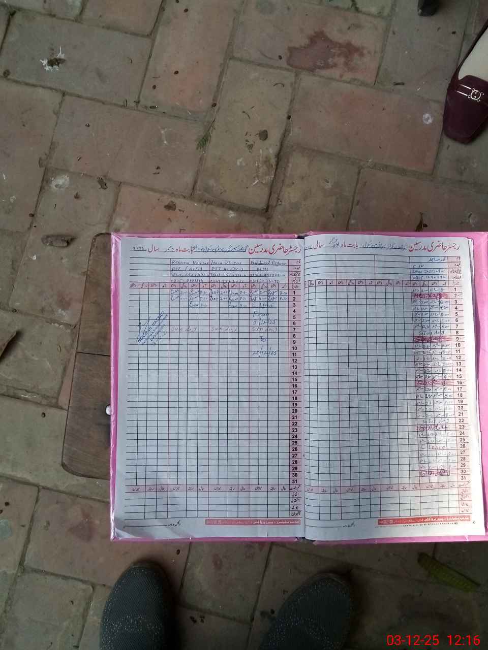 | CNIC | Full Name | Designation | R/C | Absence During Last Calender Month |
