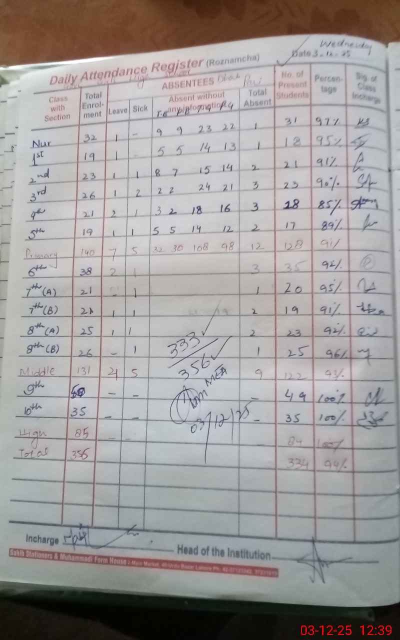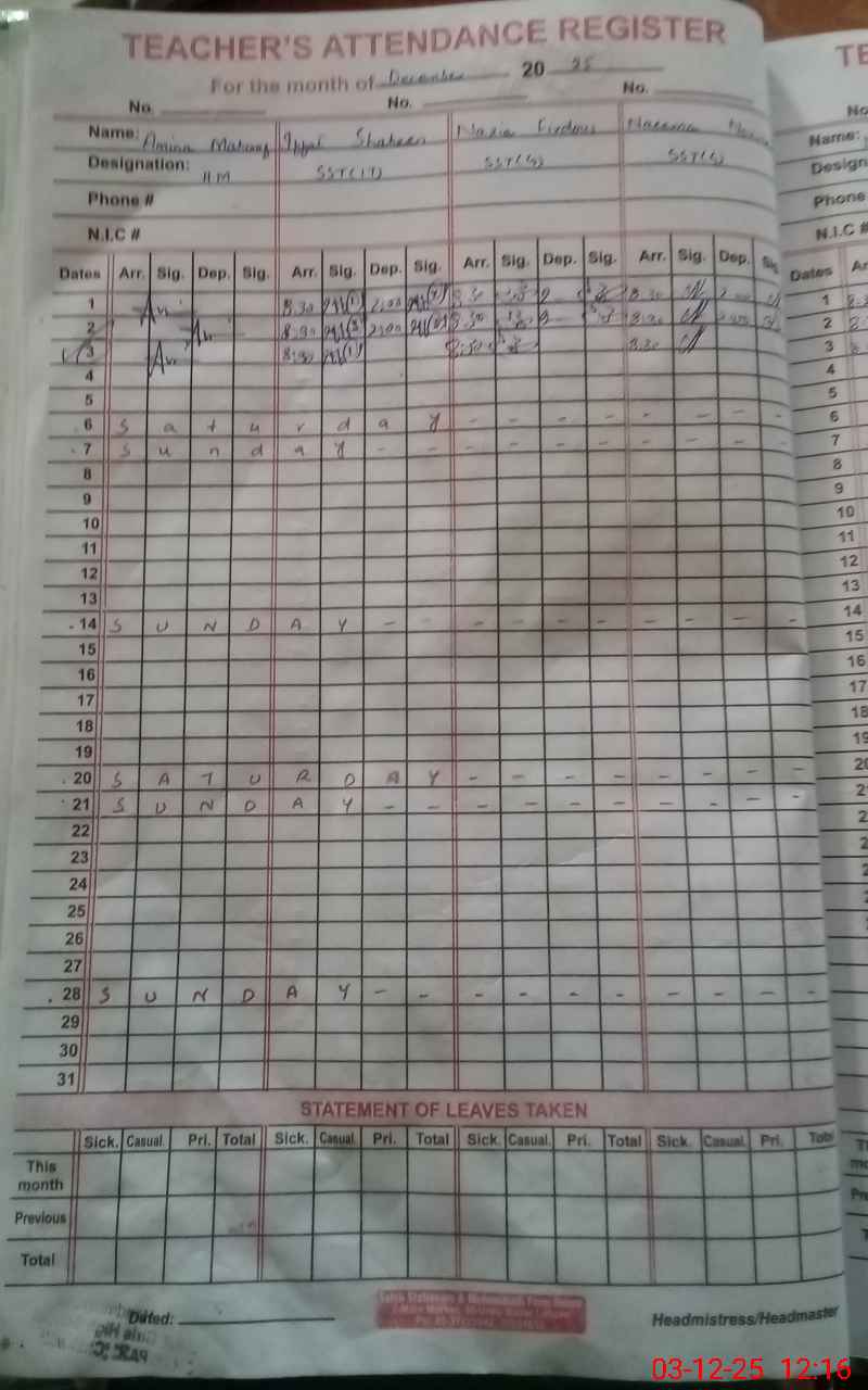 | Name: Am**** Ma**** Designation: (School Headmaster's/Headmistress's) Headmisteress Phone/Cell Number: 03**** |