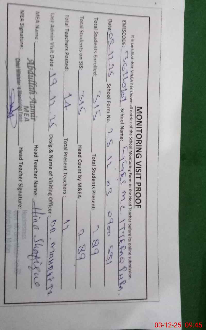 | EMIS Code: 36110101 | Name of School: GGES MC ITTEFAQ PURA MULTAN | |||
