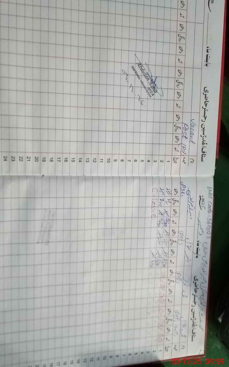 | CNIC | Full Name | Designation | R/C | Absence During Last Calender Month |