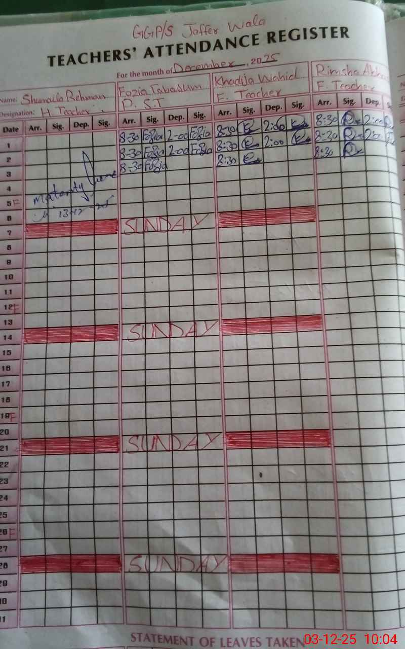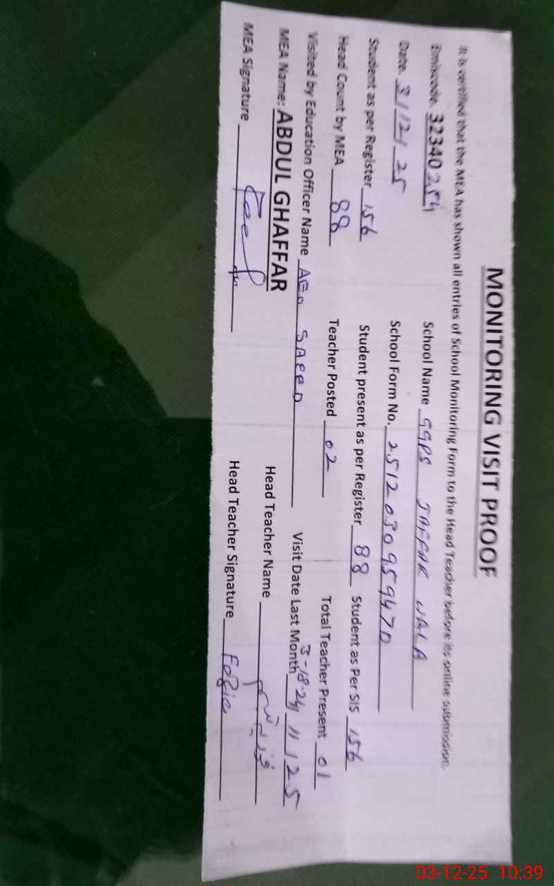 | EMIS Code: 32340254 | Name of School: GGPS JAFFER WALA | |||