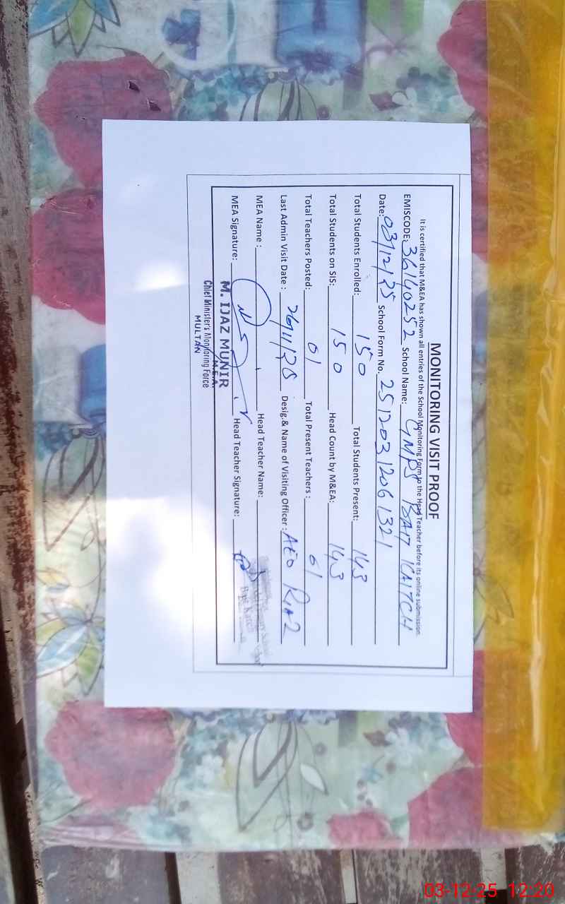 | Certified that this School was Inspected by the Undersigned MEA/DMO Today and the Information Stated Above is as Per Record. | |||||