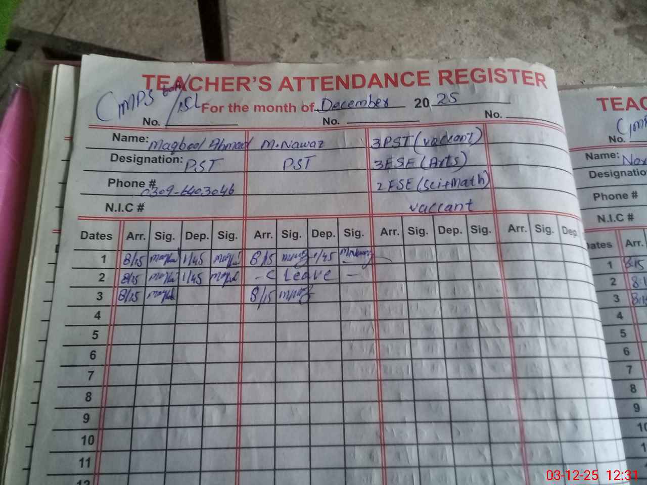 | Name: MA**** AH**** Designation: (School Headmaster's/Headmistress's) PST Phone/Cell Number: 03**** |
