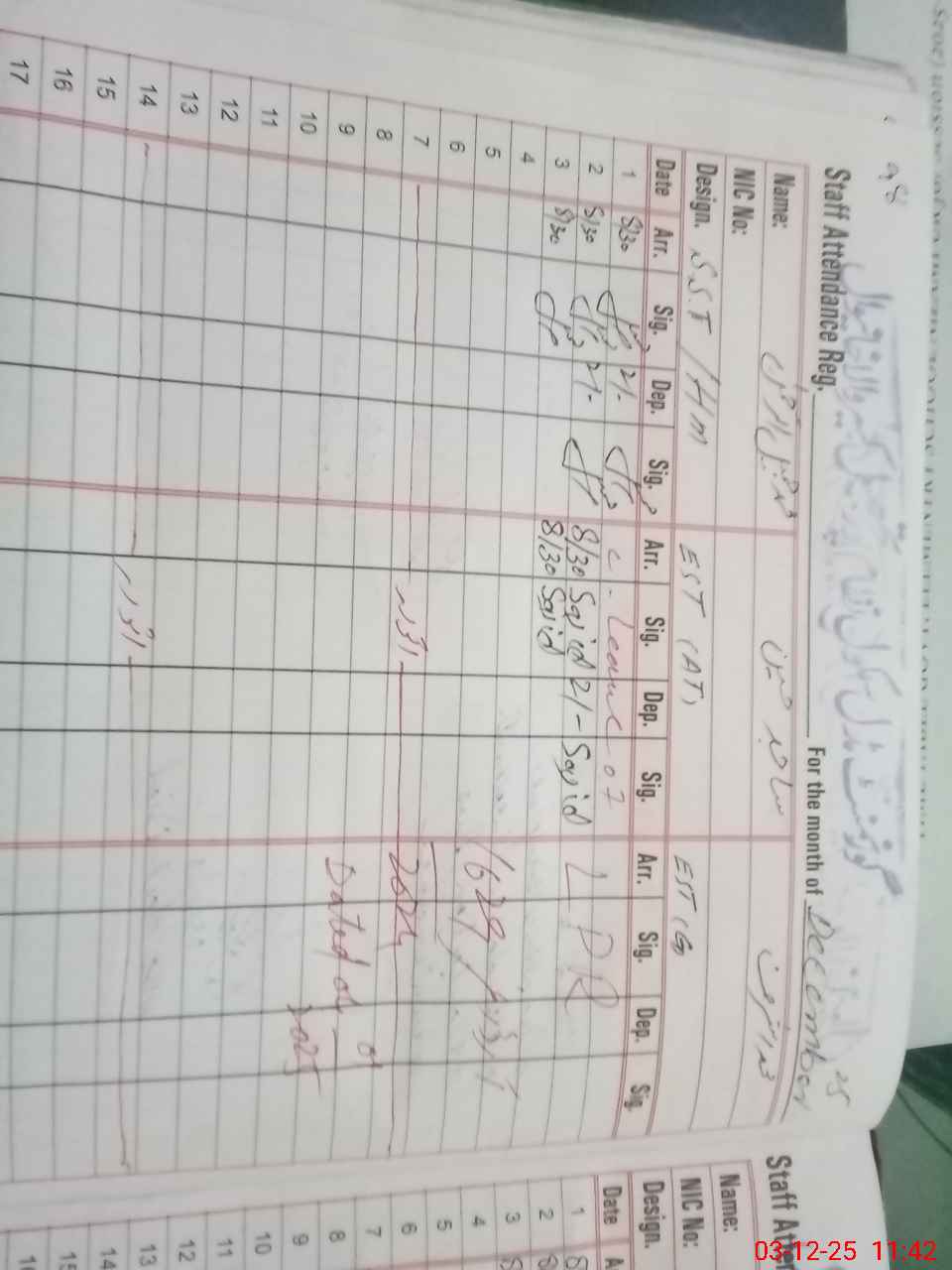 | Name: MJA**** URRE**** Designation: (School Headmaster's/Headmistress's) S.S.T.(G) Phone/Cell Number: 03**** |