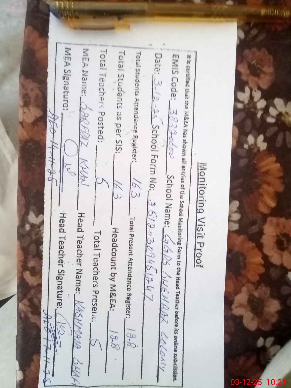 | EMIS Code: 38320600 | Name of School: GGPS SHAHBAZ COLONY | |||