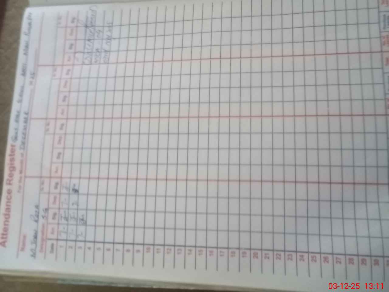 | No. of Students Present - Female | 0 | 0 | 0 | 0 | 0 | 0 | 0 | 0 | 0 | 0 | 0 | 0 | 0 | |||