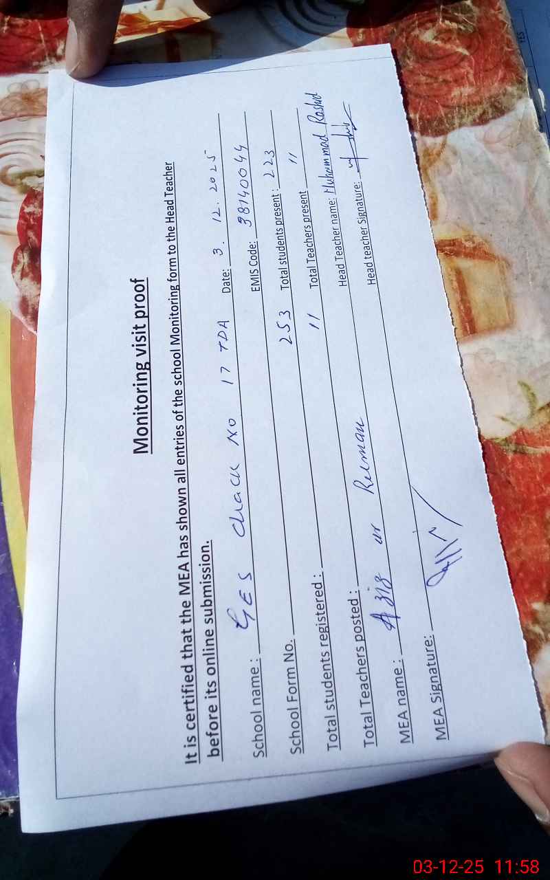 | EMIS Code: 38140044 | Name of School: GES CHAK NO 17 TDA | |||