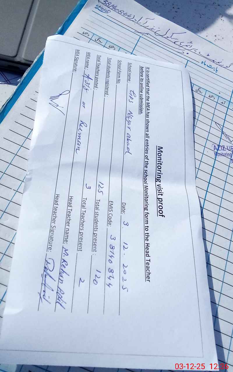 | Attendance Register | Head Teacher | MEA with School | Visit Proof |