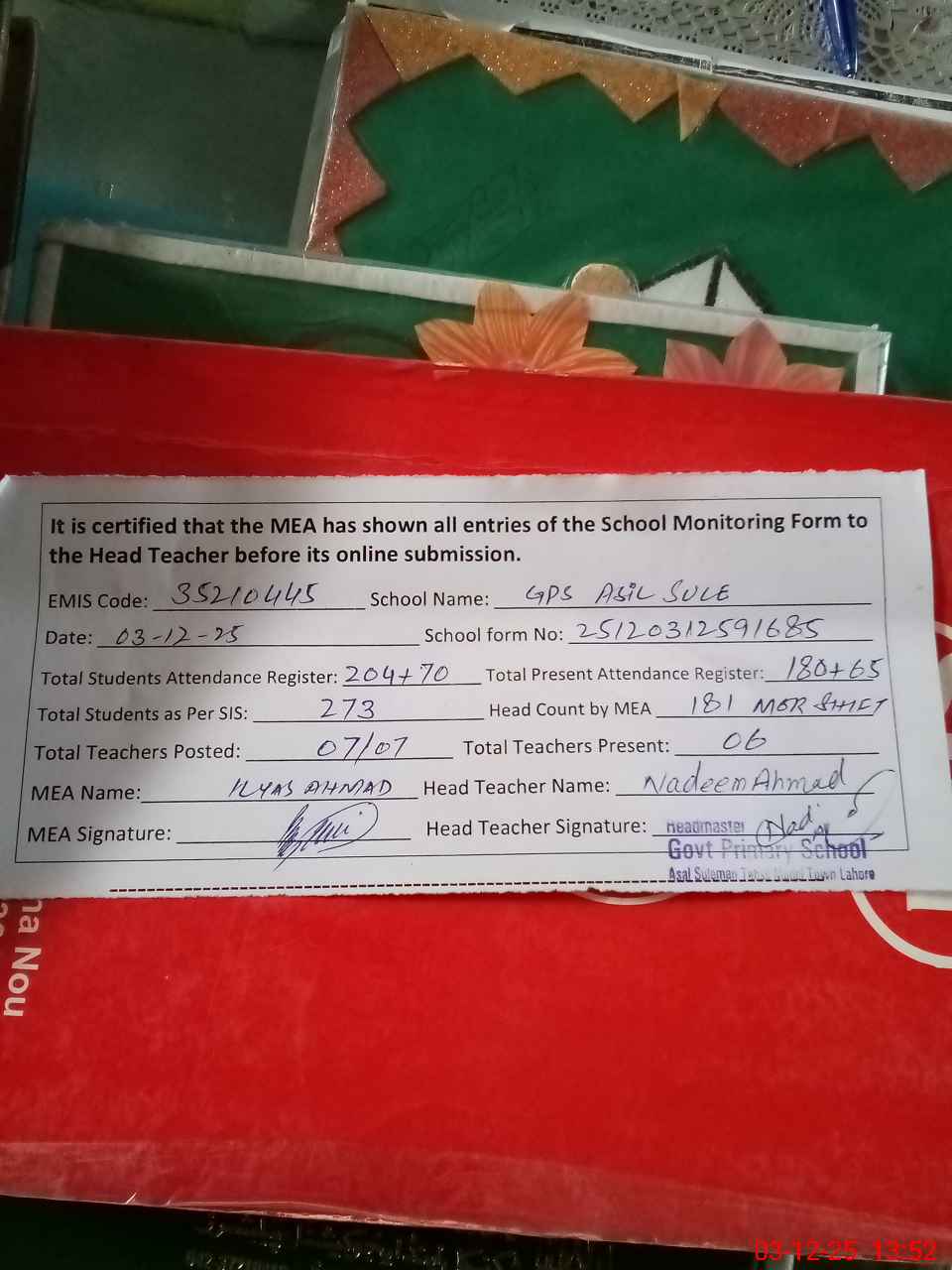 | EMIS Code: 35210445 | Name of School: GPS ASIL SULEMAN | |||