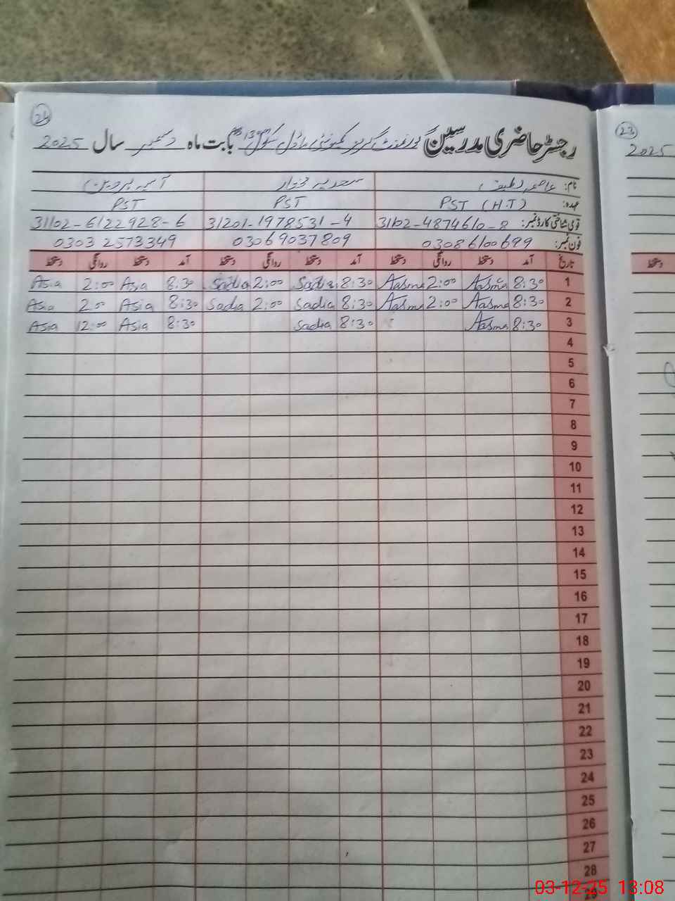 | Name: AS**** LA**** Designation: (School Headmaster's/Headmistress's) PST Phone/Cell Number: 03**** |