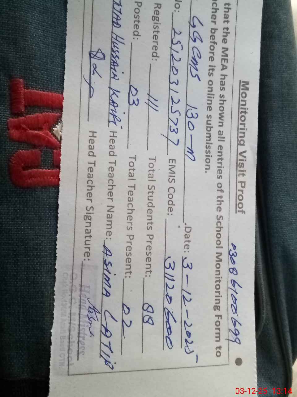 | Certified that this School was Inspected by the Undersigned MEA/DMO Today and the Information Stated Above is as Per Record. | |||||