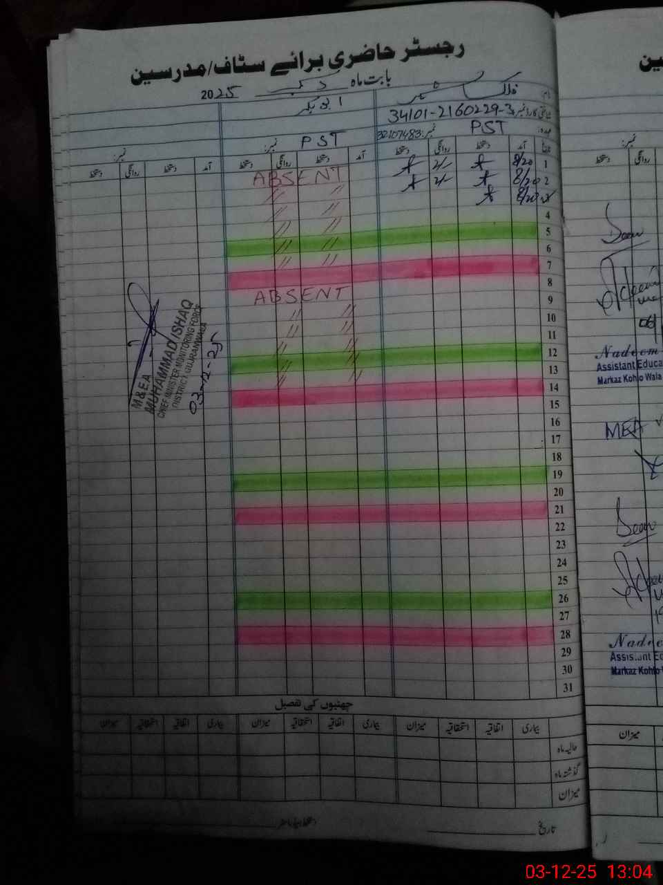 | 34**** | Ab**** Ba**** | Regular | 0 | 0 | 30 | 0 | 0 | 0 | 0 | 0 | 0 | Absent (Un-Authorized) | |