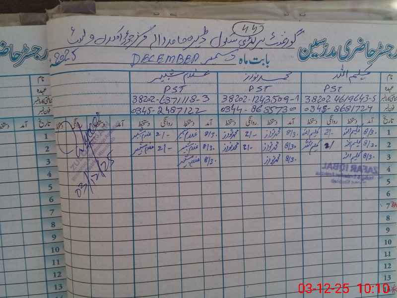 | Name: Ka**** Ul**** Designation: (School Headmaster's/Headmistress's) PST Phone/Cell Number: 03**** |