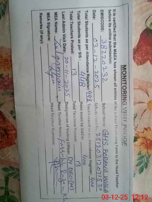 | EMIS Code: 38220232 | Name of School: GHS BORANA WALA | |||