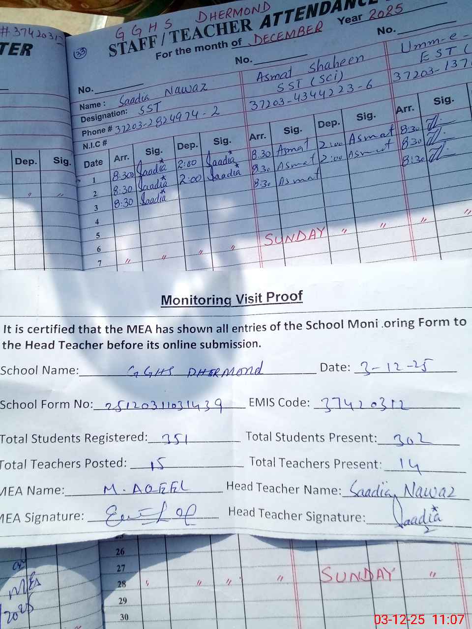 | EMIS Code: 37420312 | Name of School: GGHS DHERMOND | |||