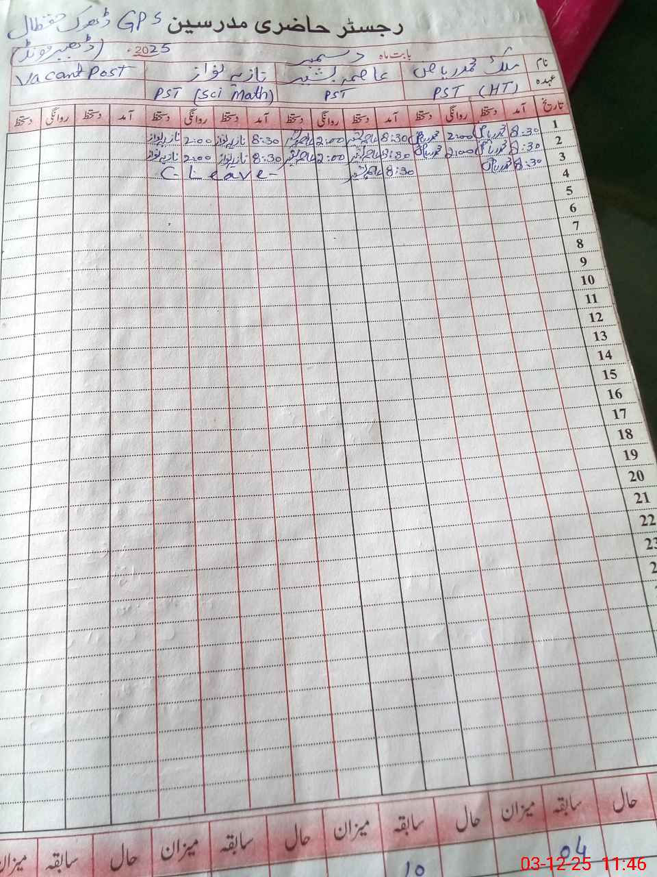 | Name: MU**** RI**** Designation: (School Headmaster's/Headmistress's) PST/PTC/JV Phone/Cell Number: 03**** |