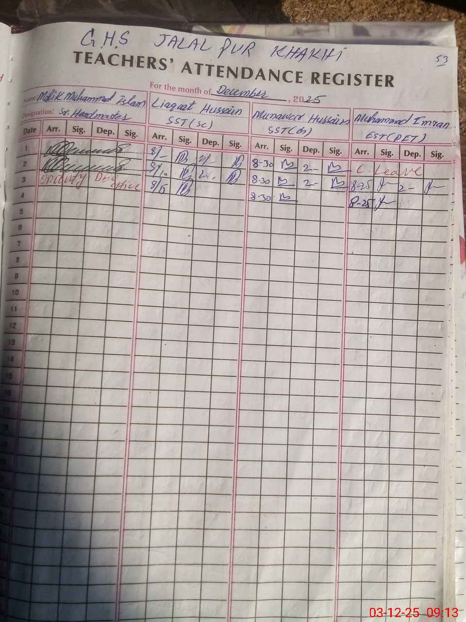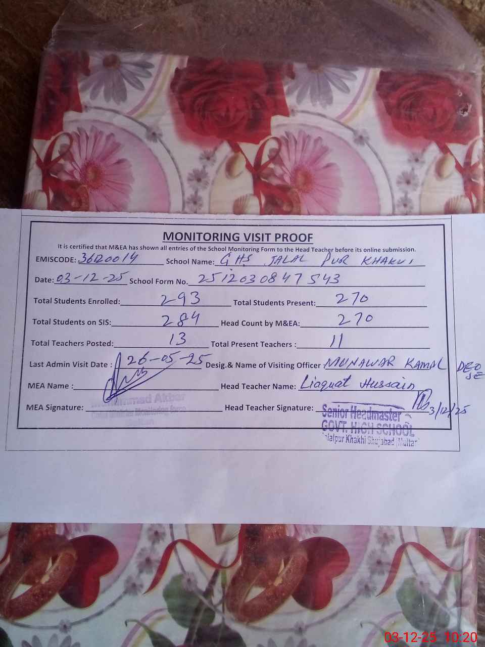 | EMIS Code: 36120014 | Name of School: GHS JALAL PUR KHAKI SHUJABAD | |||