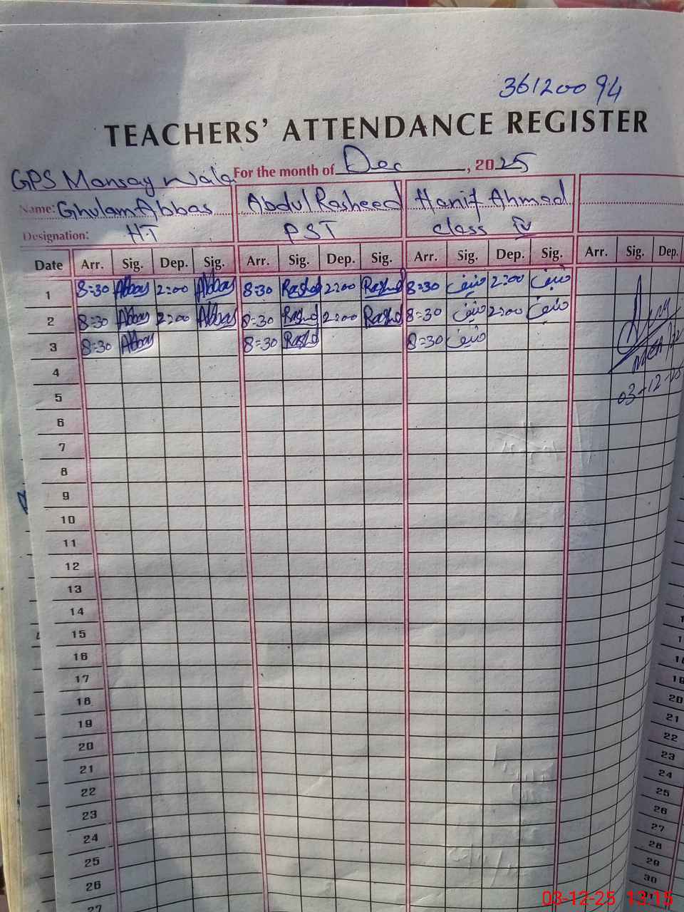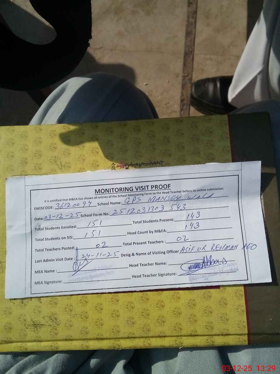 | EMIS Code: 36120094 | Name of School: GPS MANSAY WALA P/O JALAL PUR KHAKHI | |||