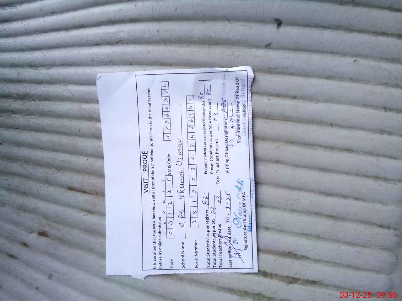 | EMIS Code: 37360274 | Name of School: GPS KARNAB USMAN | |||