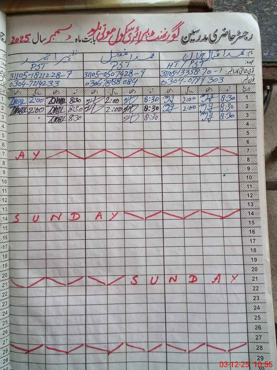 | Name: Mu**** Iq**** Kh**** Designation: (School Headmaster's/Headmistress's) PST Phone/Cell Number: 03**** |