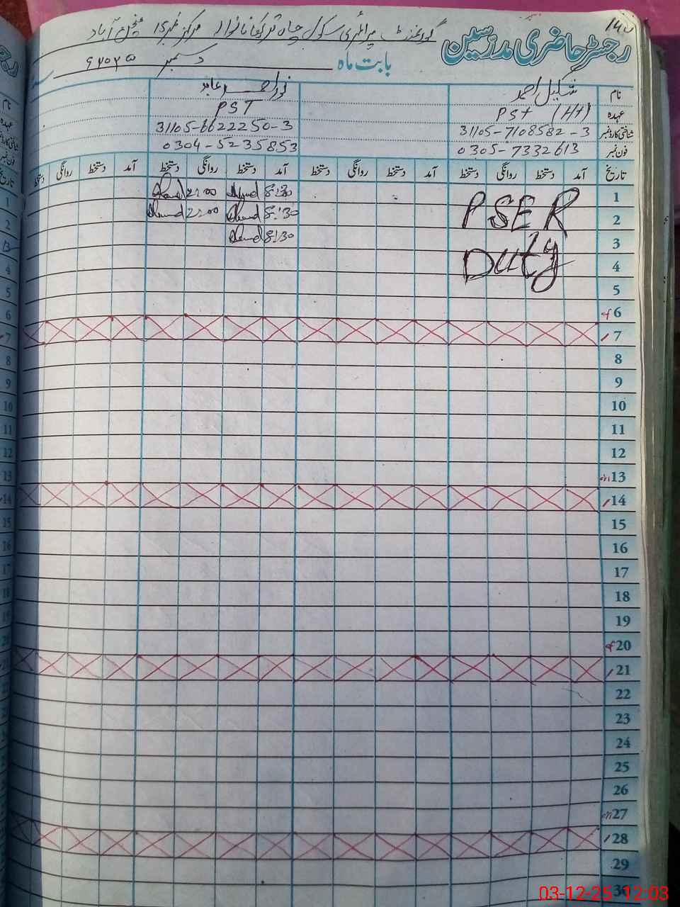 | Name: Sh**** Ah**** Designation: (School Headmaster's/Headmistress's) PST Phone/Cell Number: 03**** |