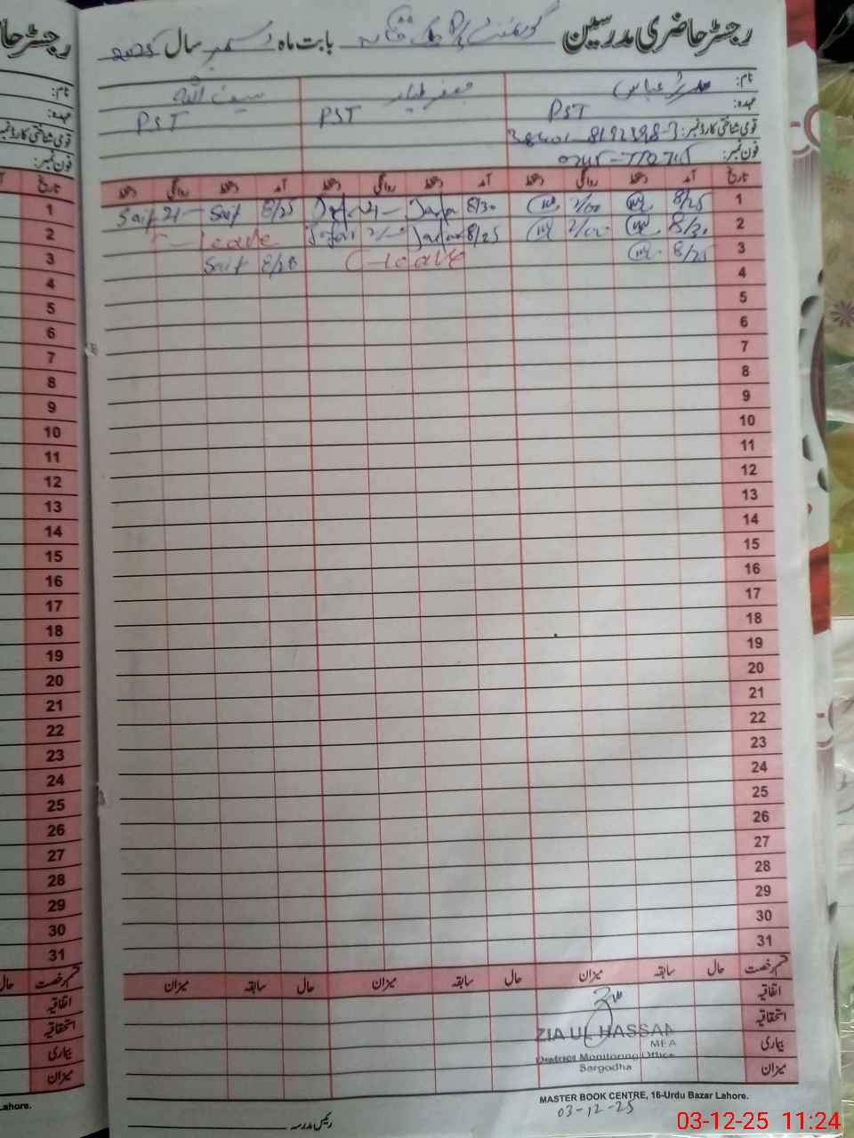 | Name: MU**** AB**** Designation: (School Headmaster's/Headmistress's) PST Phone/Cell Number: 03**** |
