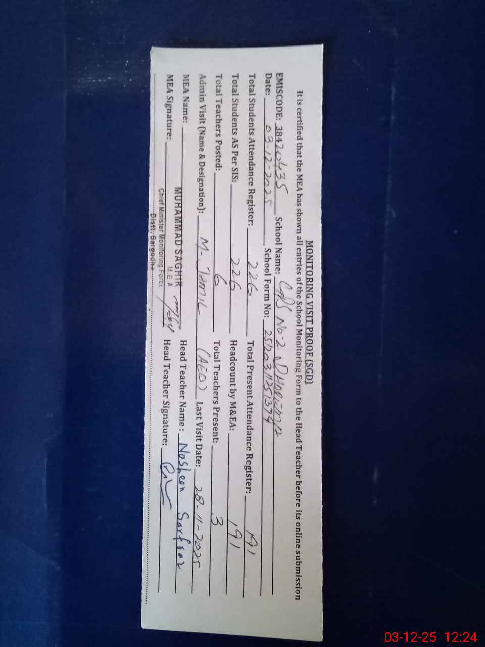 | EMIS Code: 38420435 | Name of School: GPS NO.2 DHAREMA | |||