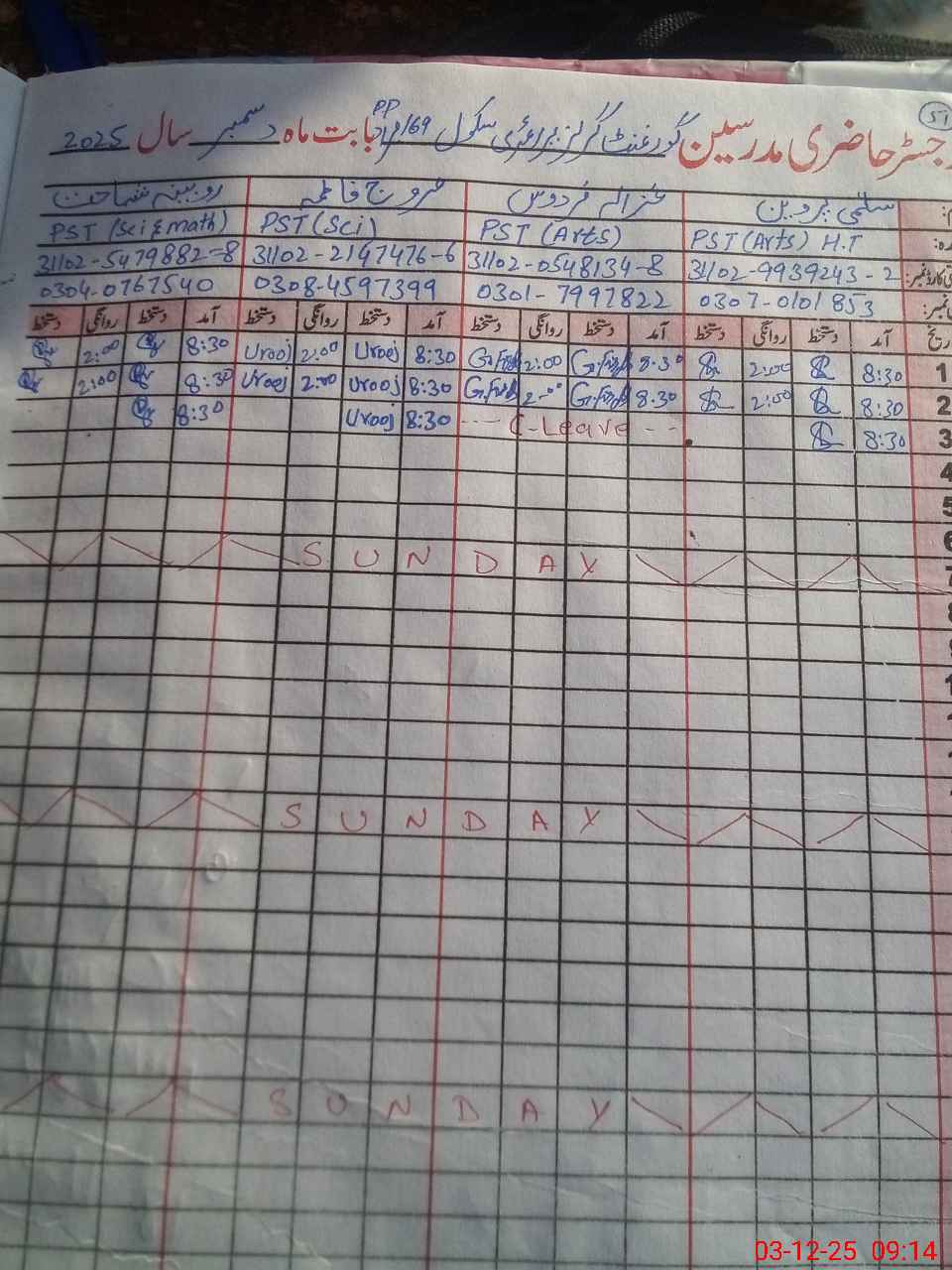 | CNIC | Full Name | Designation | R/C | Absence During Last Calender Month |
